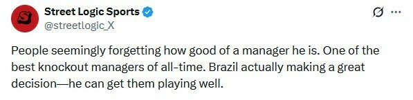 Street Logic Sports: Люди, кажется, забывают, какой он хороший тренер. Один из лучших нокаут-тренеров всех времен. Бразилия действительно принимает прекрасное решение – он может заставить их играть хорошо.