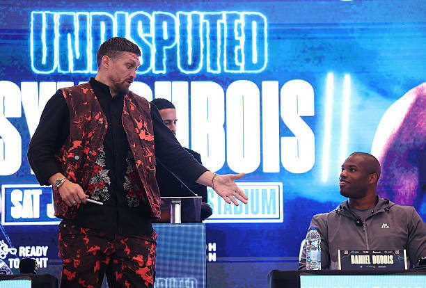 Украинский супертяж Александр Усик и британский боксер Даниэль Дюбуа провели дуэль взглядов по итогам пресс-конференции в рамках промо поединка за все титулы.
