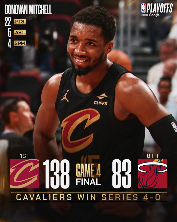 Победа с разницей в 55 очков стала рекордной в серии плей-офф. Кроме этого, в последних двух встречах «Кливленд» победил своего соперника с разницей в 92 очка, что также стало рекордным по итогам двух матчей этой стадии соревнований.