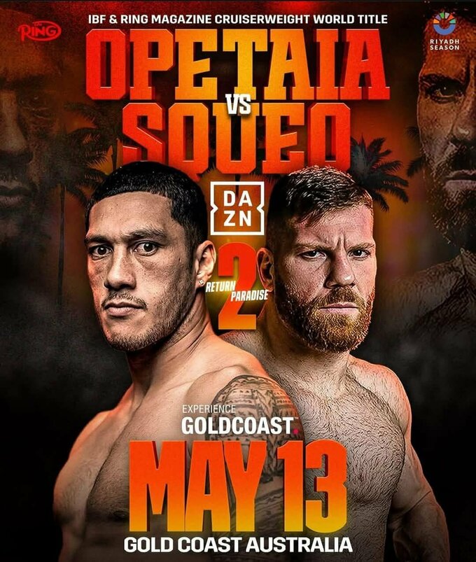 - Джей Опетая (27–0, 21 KO) – Клаудио Скуэо (17–0, 9 KO). Бой за титул чемпиона мира по версии IBF в тяжелом весе (до 90,7 кг)