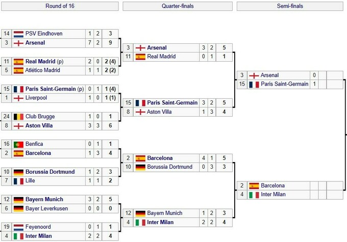 Сетка Лиги чемпионов. ПСЖ получил гандикап перед второй игрой с Арсеналом