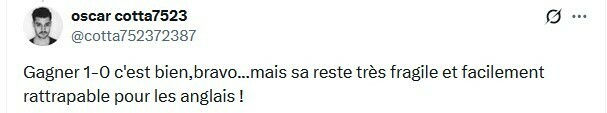 oscar cotta7523: Победа со счетом 1:0 – это хорошо, молодцы… но она остается очень хрупкой и легко поправимой для англичан!