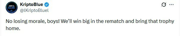 KriptoBlue: Не теряйте боевого духа, ребята! Мы победим с большим счетом в матче-реванше и привезем этот трофей домой.