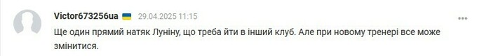 Victor673256ua: Еще один прямой намек Лунину, что нужно идти в другой клуб. Но при новом тренере все может измениться.