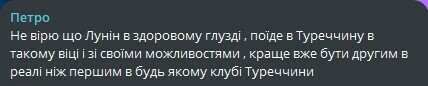 Петро: Не верю что Лунин в здравом уме поедет в Турцию в таком возрасте и со своими возможностями, лучше уж быть вторым в Реале чем первым в любом клубе Турции.
