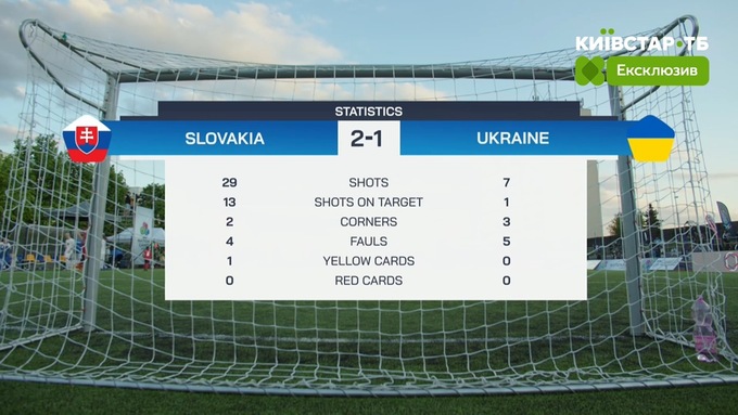 Итоговая статистика матча показала перевес Словакии (29–7 по ударам, 13–1 по ударам в створ).