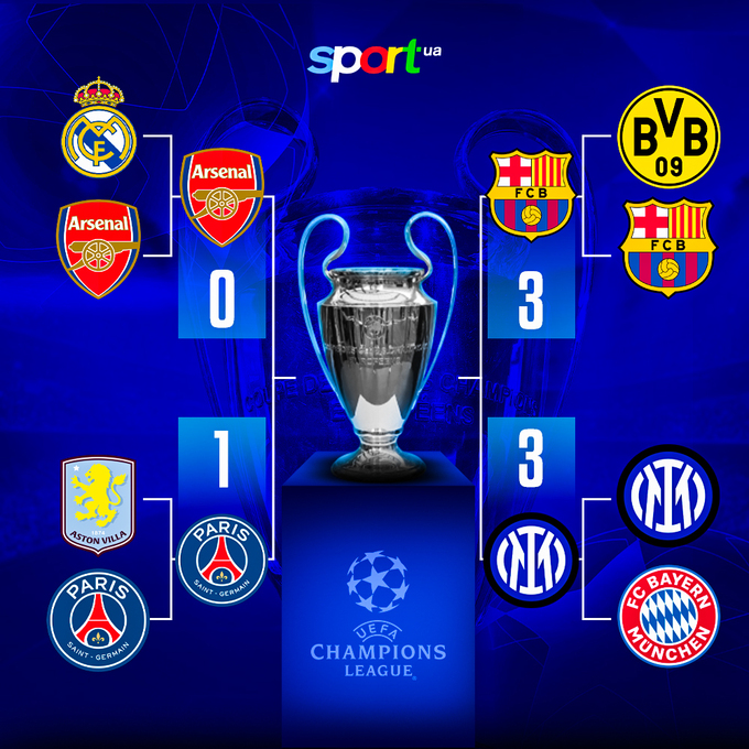 Сетка плей-офф ЛЧ. Итоги первых игр: фейерверк голов Барселоны и Интера
