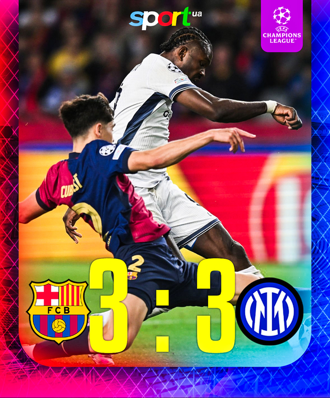 Барселона и Интер сыграли в результативную ничью (3:3) на стадионе Олимпико в Барселоне.