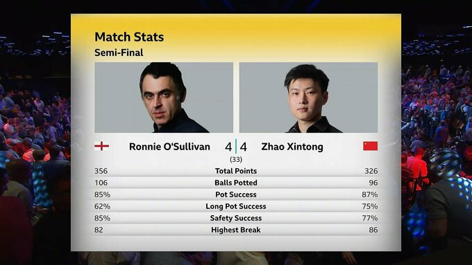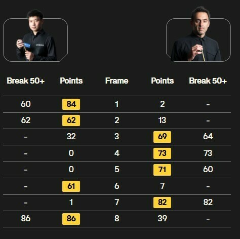Курьезный эпизод случился в 8-м фрейме при счете 4:3 в пользу Ронни. Во время серии Чжао Синьтуна порвалась луза, и шары начали выпадать из приемника – редкое явление для топ-турниров. Эксперты затем пошутили, что борьба настолько напряженная, что не выдерживает даже инвентарь. Все это повеселило зрителей, но китаец довел брейк до конца и ушел на перерыв про равном счете (4:4).