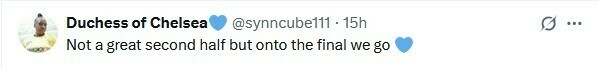 Duchess of Chelsea: Не очень удачный второй тайм, но мы идем к финалу.