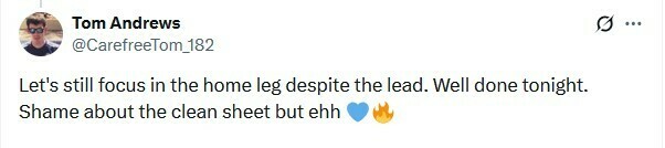 P: Даже несмотря на то, что мы вышли на домашний матч с преимуществом в 3 гола, во втором тайме игра была очень тревожной, любая приличная команда могла бы закончить тайм со счетом 3-4. Этот матч еще не закончен.