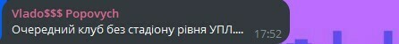 Vlado$$$ Popovych: Очередной клуб без стадиона уровня УПЛ.