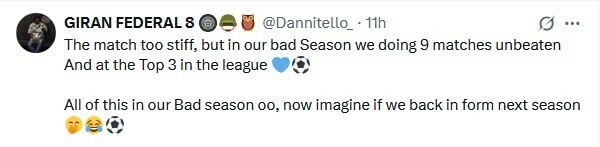 GIRAN FEDERAL 8: Матч был слишком напряженным, но в нашем плохом сезоне мы провели 9 матчей без поражений и в тройке лидеров лиги. Все это в нашем плохом сезоне, а теперь представьте, когда мы вернемся в форму в следующем сезоне.