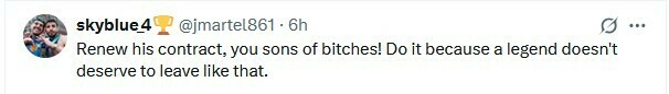 skyblue_4: Продлите с ним контракт, сукины дети! Сделайте это, потому что легенда не заслуживает того, чтобы уйти вот так.