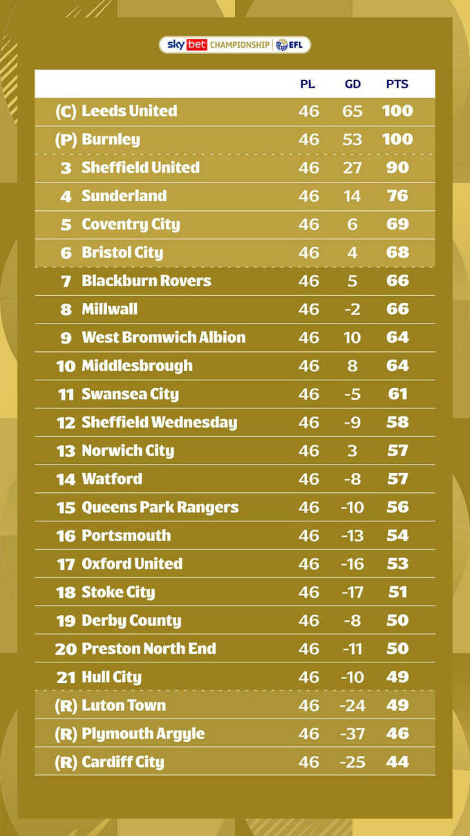 Столько же пунктов и у Бернли, но благодаря лучшей разницы забитых и пропущенных мячей чемпионами стали именно павлины. И Лидс, и Бернли напрямую вышли в элиту страны – АПЛ.