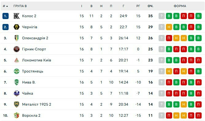 В группе Б «Горняк-Спорт» прервал серию поражений. Команда со счетом 1:0 обыграла винницкую «Ниву».