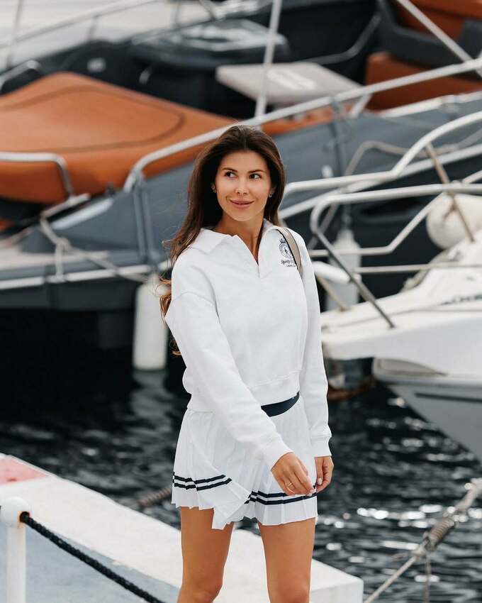 Анна позировала в спортивном мини и свитшоте, демонстрируя идеальную фигуру.