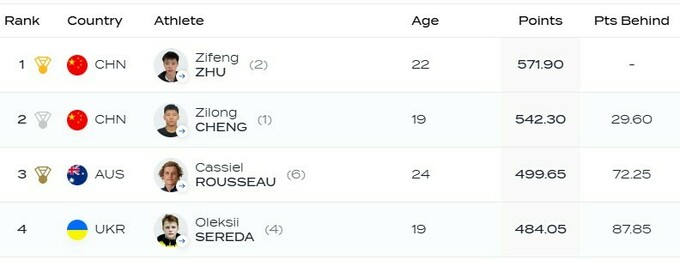 Середа набрал 484,05 балла, уступив австралийцу Касселу Руссо (499,65), который завоевал бронзу.