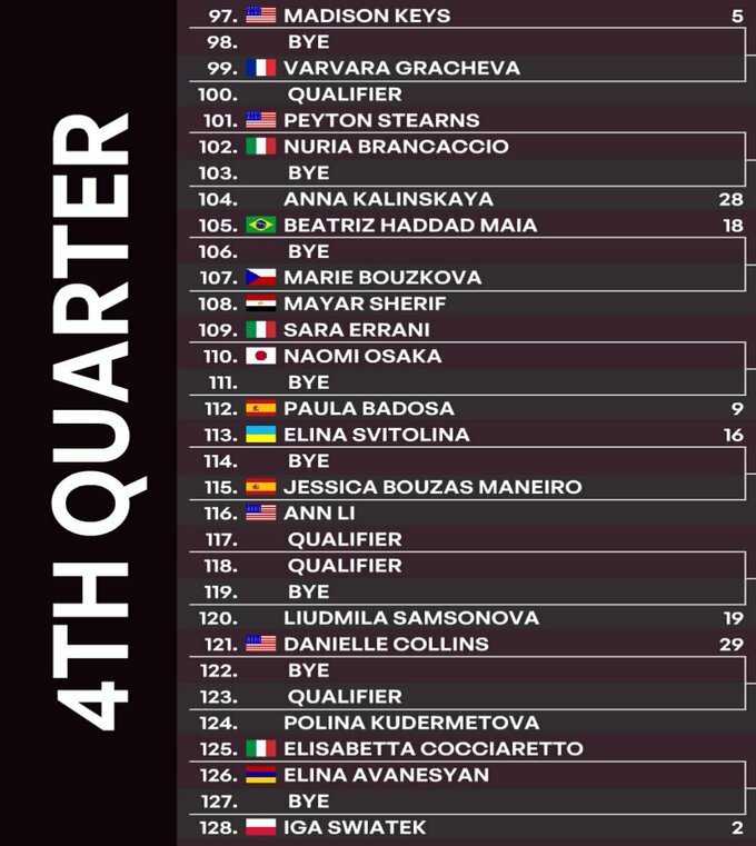 5 мая состоялась жеребьевка основной сетки грунтового турнира WTA 1000 в Риме, Италия.