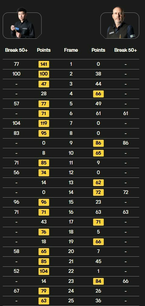 Чжао, начавший турнир с квалификации, доминировал в финале с самой первой сессии – уже после стартового отрезка он вел 7:1. После первого дня финала счет был 11:6, а по итогам третьей сессии – 17:8.
