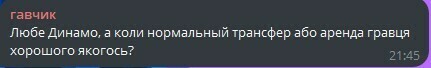 гавчик: Дорогое Динамо, а когда нормальный трансфер или аренда игрока хорошего какого-нибудь?