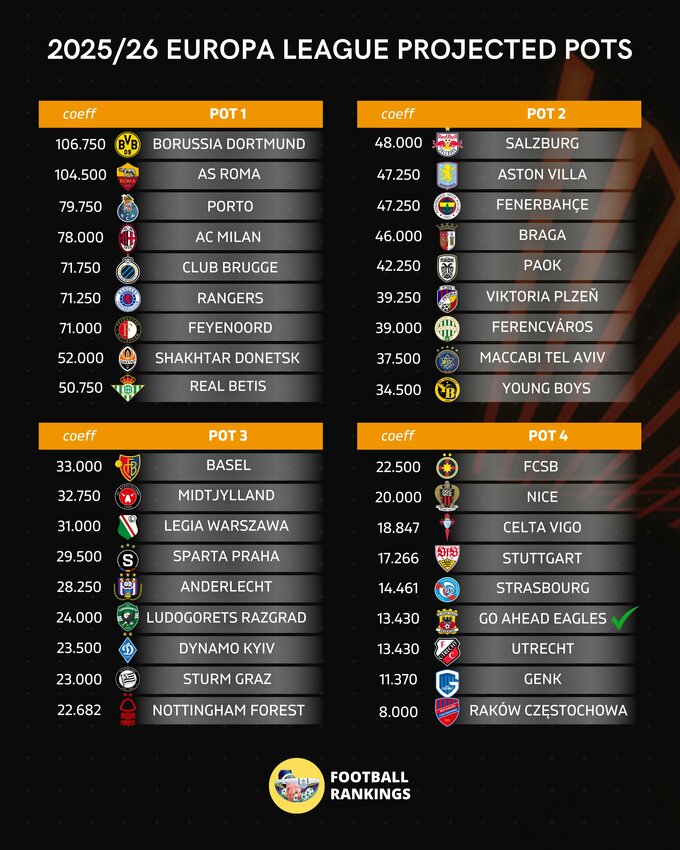 Лига Европы 2025/26. Прогнозируемые корзины посева