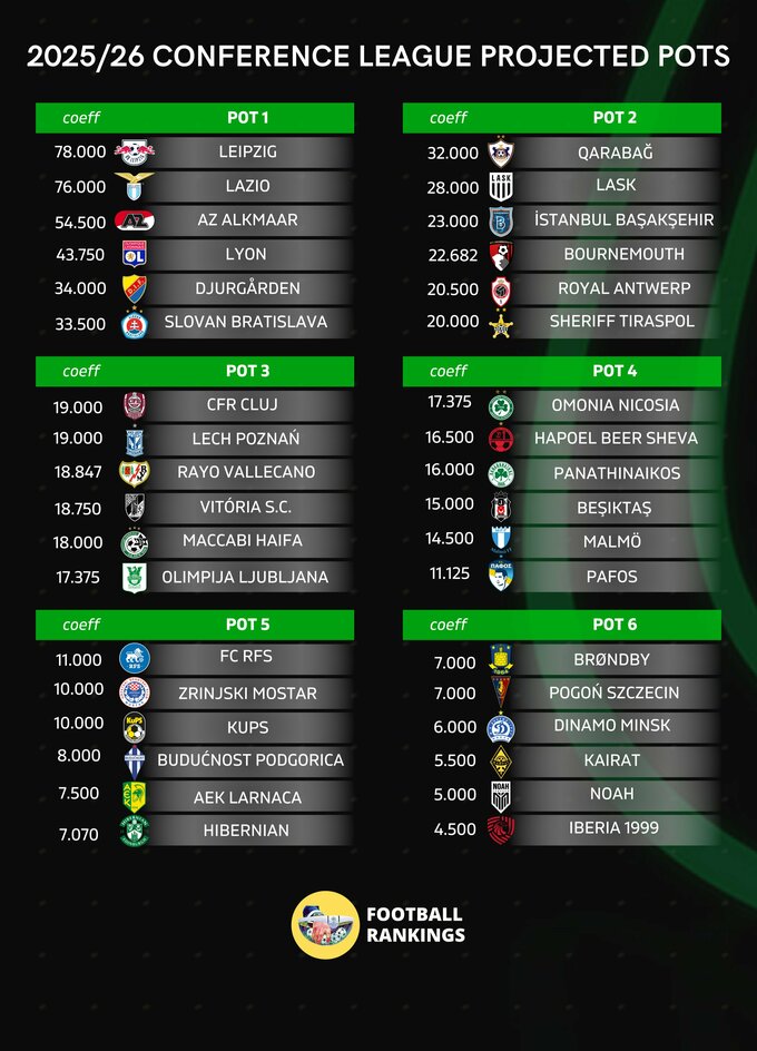 Лига конференций 2025/26. Прогнозируемые корзины посева