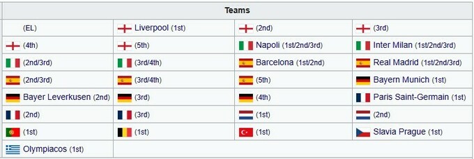 Уже известно 10 из 36 клубов-участников основного раунда ЛЧ 2025/26