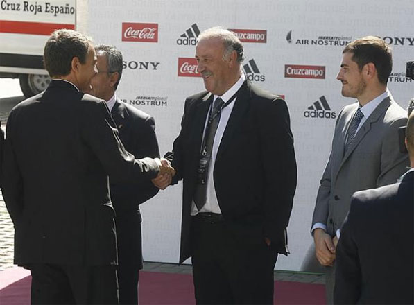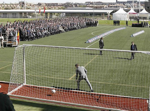 Фотосессию немного задержал премьер-министр Испании Сапатеро, которому вдруг приспичило бить пенальти Касильясу. Поспорил, наверное, у себя в кабинете министров...