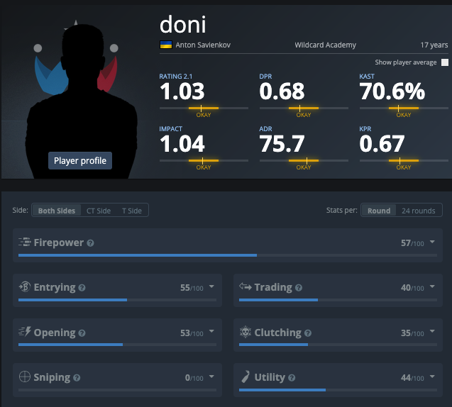 - DPR (смерти за раунд) – 0.68