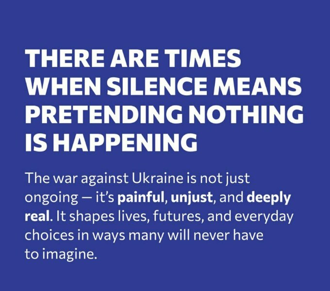 «Бывают времена, когда молчание означает делать вид, будто ничего не происходит. Война против Украины не просто продолжается – она болезненна, несправедлива и глубоко реальна. Она формирует жизнь, будущее и повседневный выбор способом, который многим даже не придется представить.