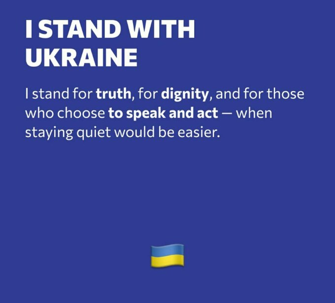 Я за Украину. Я выступаю за правду, за достоинство и за тех, кто решает говорить и действовать, когда молчать будет легче».