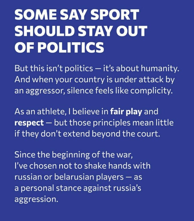 С начала войны я решила не жать руку российским или белорусским теннисисткам – как личную позицию против агрессии россии.