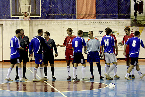 Первый матч начался с того, что арбитры запретили нескольким игрокам «Укрэксимбанка» выходить на поле. Связано это с ужесточившимися требованиями организаторов к экипировке команд. На этом вопросе еще на первом собрании команд серьезно акцентировал внимание Леонид Иосифович Матьков - президент Федерации футзала г. Киева. Все игроки команды должны быть одеты в одинаковую форму (не одного цвета, а именно одинаковую), а гетры всех игроков должны быть одного цвета! Просим все команды обратить на это особое внимание! Иначе арбитры просто не допустят игроков Вашей команды к игре. Ведь согласитесь насколько красивее и зрелищнее выглядят матчи со стороны, если команды экипированы как положено!