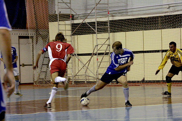 Итак к матчам. «Укрэксимбанк» не стал долго раскачиваться, и уже на первой минуте Александр Татарчук забил первый гол турнира. Спустя всего 2 минуты Юрий Дунаевский удвоил преимущество банкиров, начавших игру с мощнейшего напора на соперника и на высочайшей скорости. «Аквахаус» немного растерялся в первые минуты, хотя видно было, что команда крепкая и интересная, а потом стал активнее играть впереди. И оно получалось - играть, вот только забить не получалось. То Андрей Франчук запорол выход один на один с Константином Головахой, то его партнеры неудачно распоряжались мячом, вероятно в активной борьбе с волнением. Одним словом у «Аквахауса» было 4 шикарнейших возможности не только сравнять счет, а и выйти вперед. Но на последнем рубеже немного не хватило точности. Зато у банкиров влетало все, по крайней мере в первом тайме, который завершился со счетом 6:0.