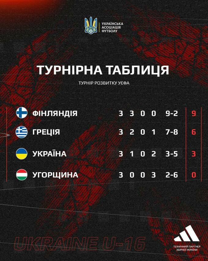 Сине-желтые, готовясь к квалификации Евро-2026 U-17, приняли участие в соревнованиях в Финляндии. Подопечные Александра Сытника потерпели поражения от Греции (1:3) и Финляндии (0:1), а затем переиграли команду Венгрии (2:1).