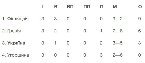 Итоговое положение: 1. Финляндия (9 очков), 2. Греция (6), 3. Украина (3), 4. Венгрия (0).