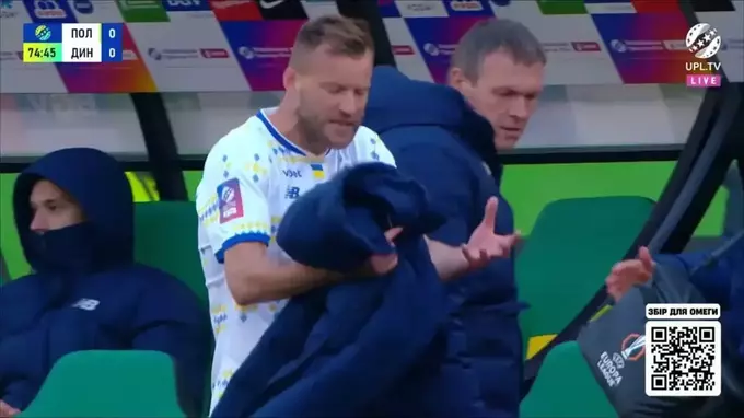 На 75-й минуте главный тренер «бело-синих» решил выпустить на поле 21-летнего Назара Волошина вместо одного из лидеров клуба Андрея Ярмоленко. Вингер «Динамо» не смог сдержать эмоций, после того как покинул поле.
