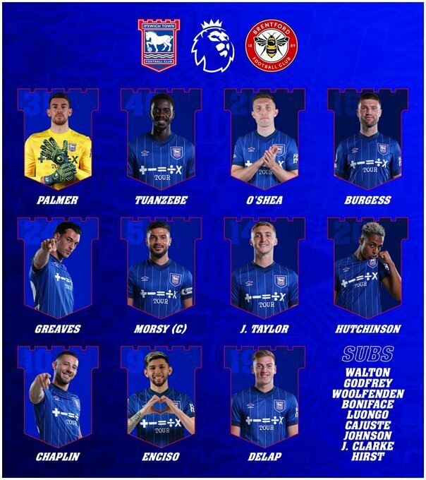 Стартовые составы на матч «Ипсвич» – «Брентфорд»: