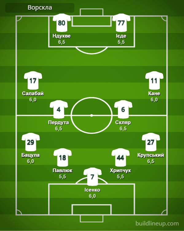 «Ворскла»: Исенко – Бацула (Е. Пасич, 62), Павлюк, Хрипчук, Крупский – Салабай (Островский, 71), Пердута, Скляр, Кане – Ндукве, Иеде (Малыш, 62).