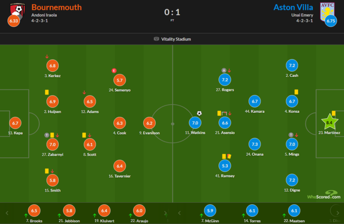 Лучшим по версии обоих порталов стал кипер гостей Эмилиано Мартинес. На его счету 4 сейва и оценки 8.3 и 8.4.
