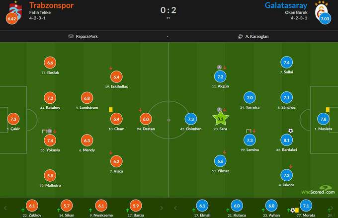Оценки матча «Трабзонспор» – «Галатасарай» по версии WhoScored.