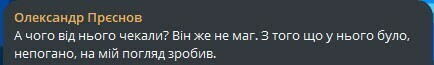 Олександр Прєснов: А чего от него ждали? Он ведь не маг. Из того, что у него было, неплохо, на мой взгляд сделал.