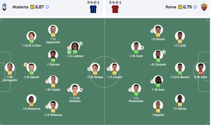 Лучшим игроком матча по версии WhoScored стал полузащитник «Ромы» Бриан Кристанте. Ему статистический портал поставил 8.1 балла.