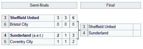 После победы «Сандерленда» со счетом 2:1 в первой игре команды сыграли вничью 1:1 (в овертайме) в ответной встрече, что позволило «черным котам» выйти в финал.