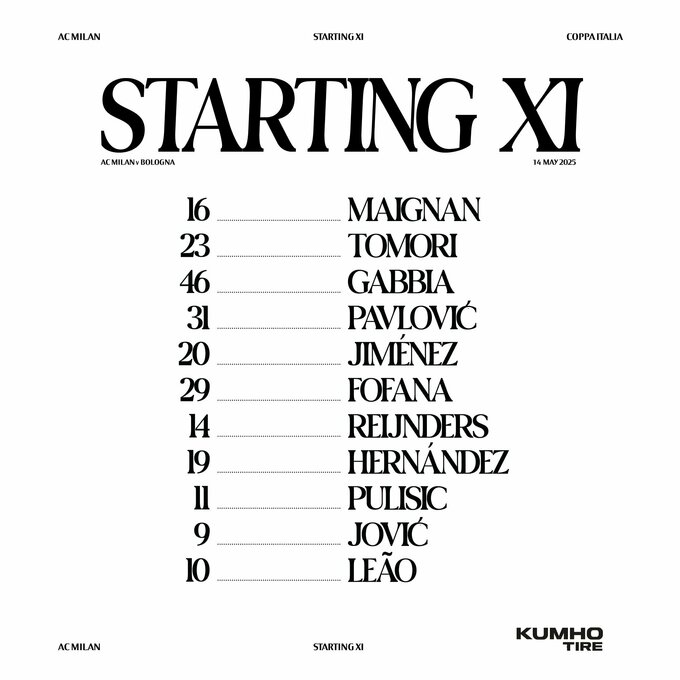 Стартовые составы. В финальном матче Милан играет против Болоньи