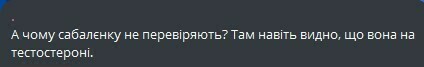.: А почему Сабаленку не проверяют? Там даже видно, что она на тестостероне.
