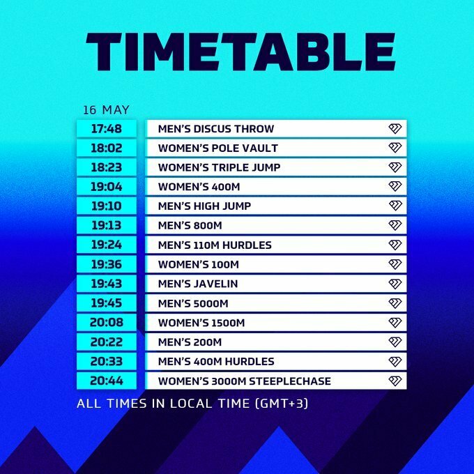 Бриллиантовая лига. З-й этап. Доха, Катар. Расписание соревнований