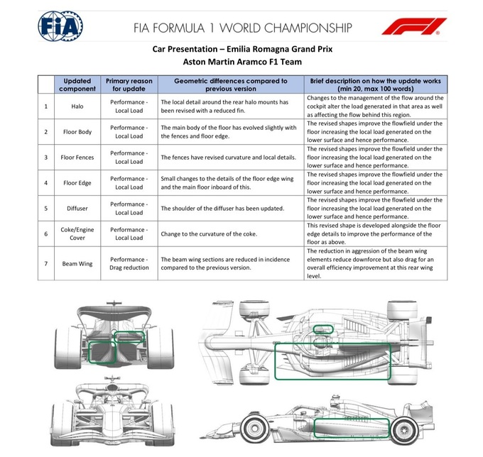 Одно из самых масштабных обновлений этого этапа привезла Астон Мартин. В него вошли: новая форма боковых понтонов (фото снизу), измененные аэродинамические элементы в местах крепления системы Halo, одноэлементное бим-крыло и серьезно обновленное днище. Важно, что изменения охватывают не только переднюю часть дна (входную секцию), но и области дефлекторов и стенки диффузора, отвечающие за управление основными воздушными потоками.