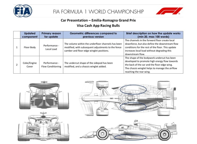 Сателлитная команда Ред Булла представила обновления в зоне каналов днища, а также новую форму краев входной секции и боковин в центральной части болида. Основная цель – повышение прижимной силы в передней части пола и уменьшение потерь воздушного потока на пути к задней части шасси.